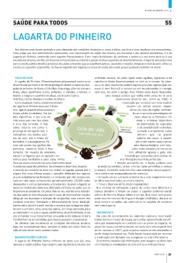 A Lagarta do Pinheiro (Thaumetophoea pityocampa) encontra-se substância tóxica (taumatopoína) na pele ou mucosas. As crian-