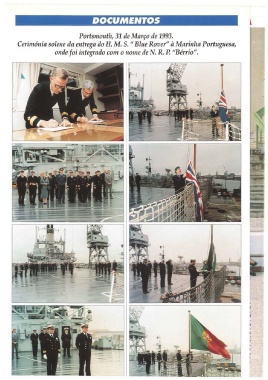 DOCUMENI'OS Portsmouth, 31 de Março de 1993. Cerimónia solene da entrega do H. M. S. " Blue Rover" à Marinha Portuguesa, onde foi integrado com o nome de N. R. P. "Bérrio".