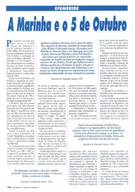 5 de Outubro, a realização de são liames ql/e jamais poderão ser esquecidos segundo o VALM Moura da