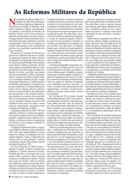 técnicas nas áreas da defesa, das fortificações, politano e o Exército colonial. Neste, o serviço capítulo especial dedicado às ForçasArmadas,