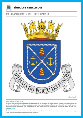 lho. Sotoposto listel ondulado de prata com a legenda em letras negras maiúsculas, tipo elzevir, «CAPITANIA DO PORTO DO FUNCHAL».