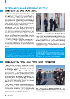 Redatora Centrais da Marinha – Rua do Arsenal Página Ímpar, Lda. navais efetuados, manifestando o seu reconhecimento pelo sentir uma enorme honra e satisfação por voltar ao mar e reco-