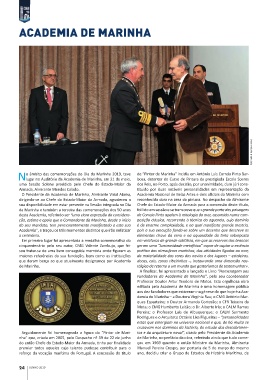 Seguidamente foi homenageada a fi gura do “Pintor de Mari- tos e da arquitetura naval”, citado pelo Presidente da Academia