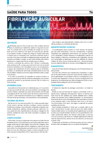 dente Vascular Cerebral (AVC). A FA é responsável por 15% dos AVC. www.facebook.com/parƟ cipanosaudeparatodos