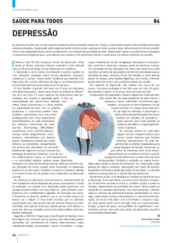 números elevados. A depressão afeta negaƟ vamente a forma como a pessoa se sente, pensa e atua, infl uenciando de forma conside-