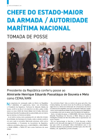 posse ao novo Chefe do Estado-Maior da Armada, Almirante -maior da Armada/Autoridade Marítima Nacional (CEMA/AMN),