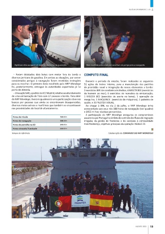 de uma embarcação de fibra com 17 pessoas a bordo. Para além 1 MISCEX 802 (exercício de avaria no leme); 1 operação de