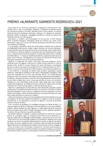 Seguiu-se a atribuição do prémio «Almirante Sarmento Rodrigues 2021», CALM Luiz Roque Martins