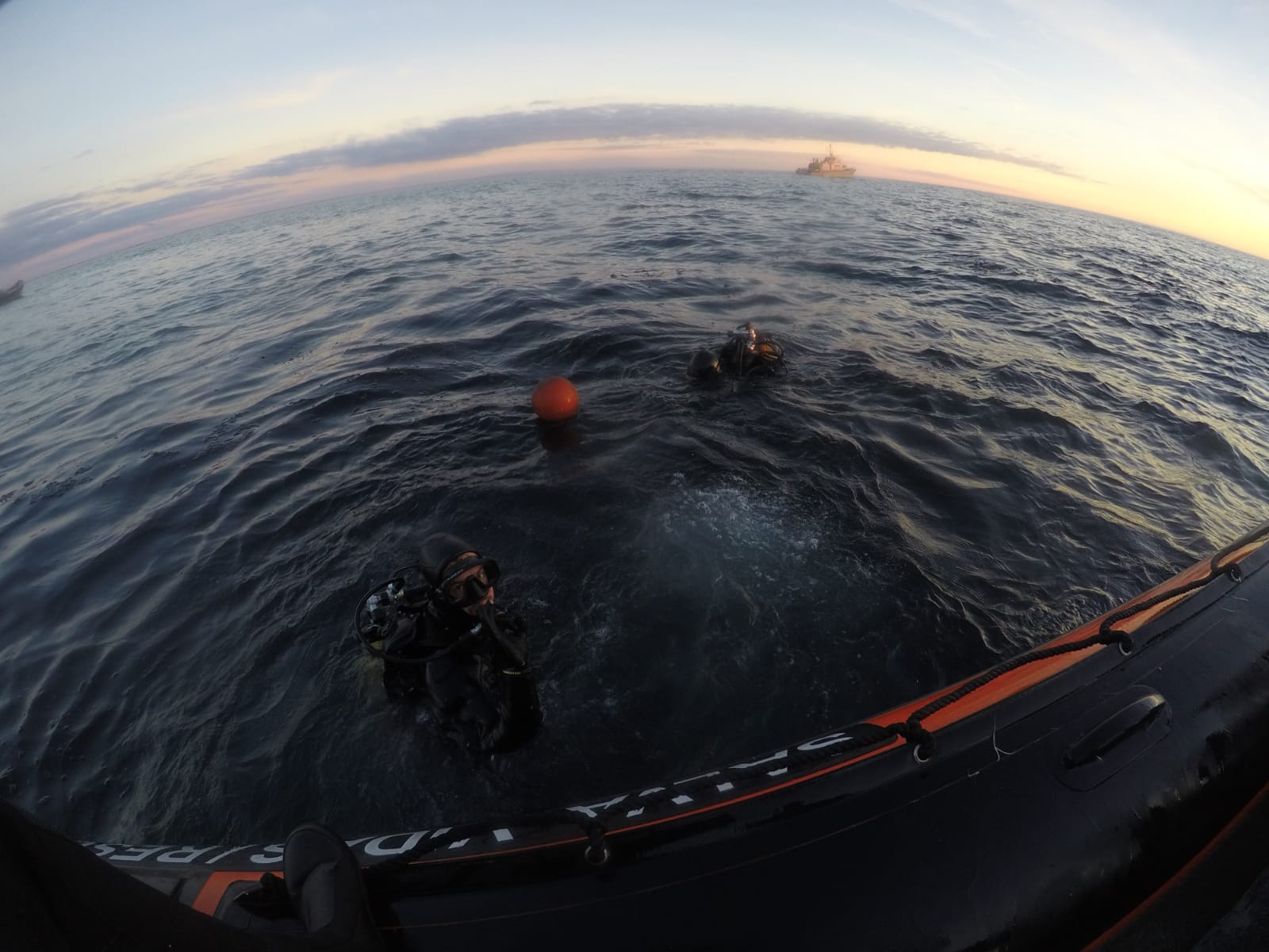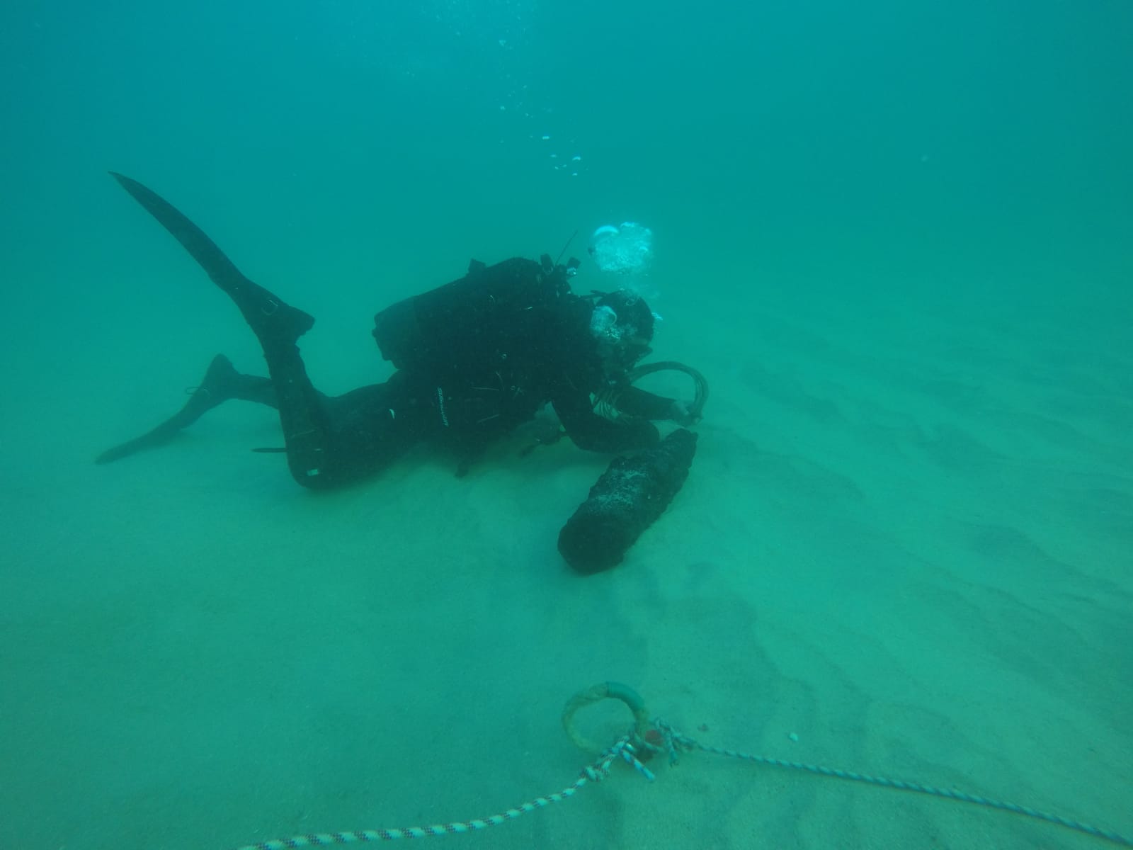 Após várias horas de buscas, na área assinalada, os Mergulhadores Sapadores da Marinha detetaram e identificaram dois projéteis de artilharia enterrados no local, que foram prontamente inativados.